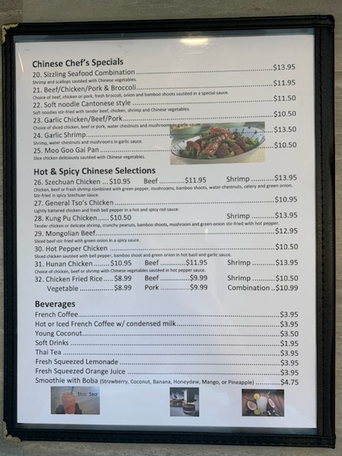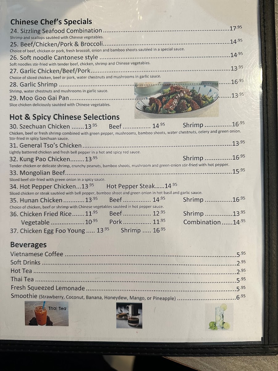 For those craving something spicy, the Szechuan Chicken, Szechuan Beef, and Szechuan Shrimp offer bold, flavorful dishes. The General TSO's Chicken and Kung Pao Chicken bring a sweet and spicy kick, while the Sizzling Seafood Combination and Beef/Chicken/Pork & Broccoli are must-try chef specials.
