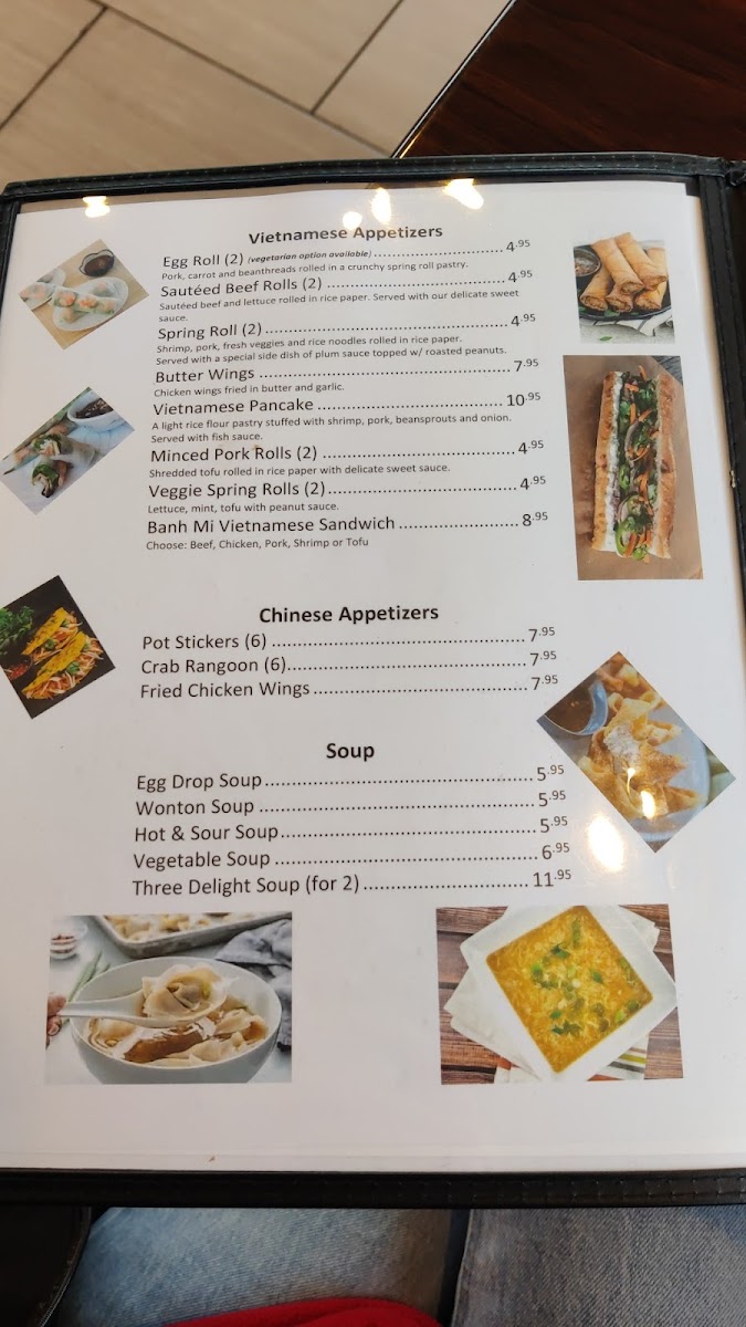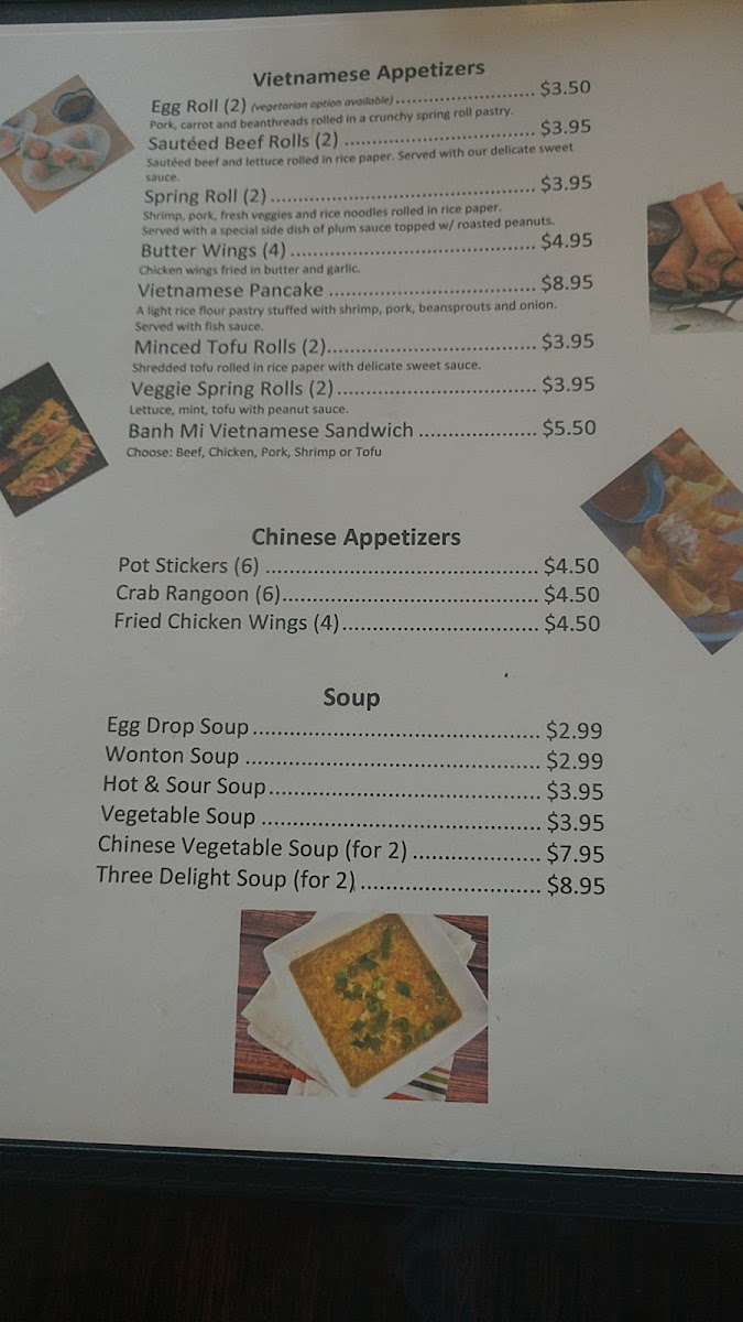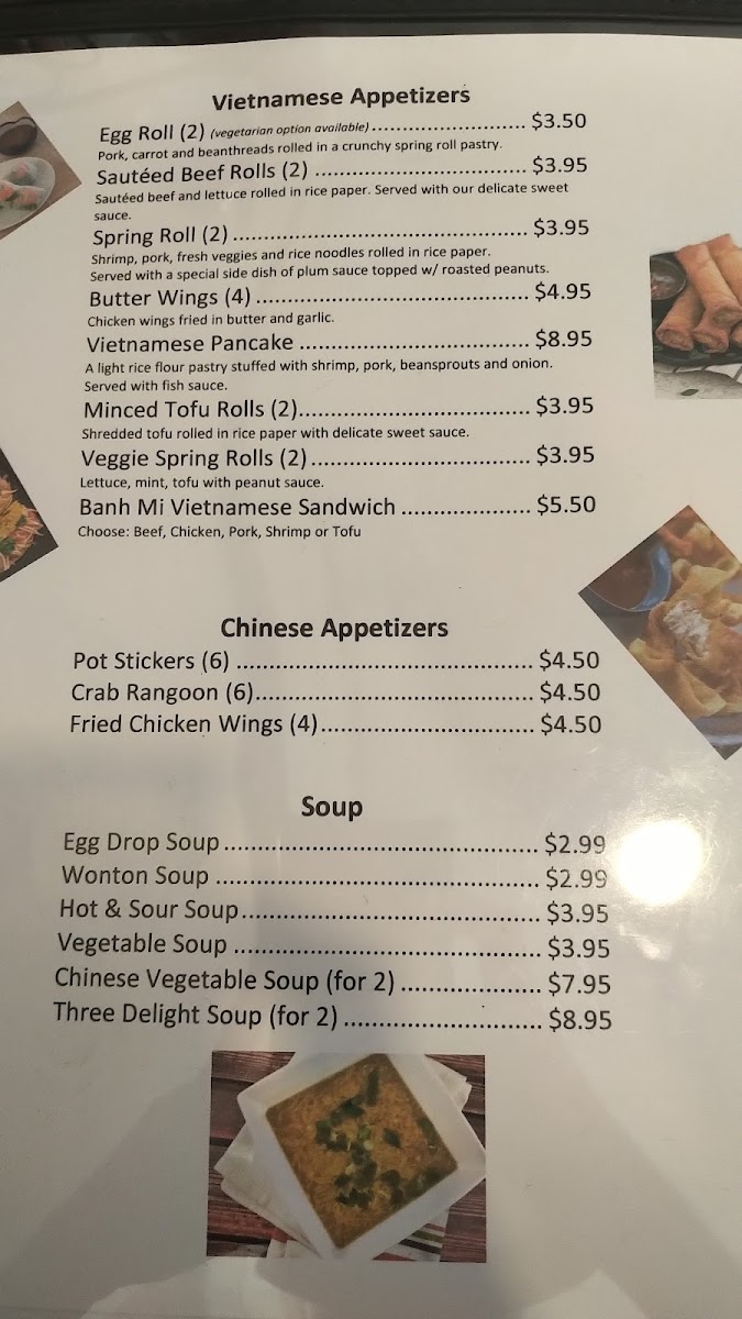 What The Pho, located at 7280 Michigan Rd in Indianapolis, offers a vibrant and diverse menu with something for everyone, from traditional Vietnamese dishes to Chinese-inspired favorites. Starting with the appetizers, you can enjoy Egg Rolls, Sauteed Beef Rolls, or Butter Wings, each offering a unique twist on classic flavors. The Vietnamese Pancakes and Minced Pork Rolls are also great choices for those looking to try something different.