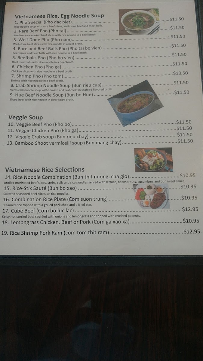 The rice and rice noodle selections provide a variety of tasty dishes, such as the Rice Noodles Combination (Bun Thit Nuong Cha Gio), a mix of grilled pork and egg rolls, or the savory Rice Stix Sautéed (Bun Bo Xao). The Combination Rice Plate (Com Bi Suon) and Cube Beef (Com Bo Luc Lac) are also popular options for those who enjoy a combination of rice and flavorful meats, while the Lemon Grass Chicken, Beef, or Pork options bring a delicious balance of spices and herbs.
